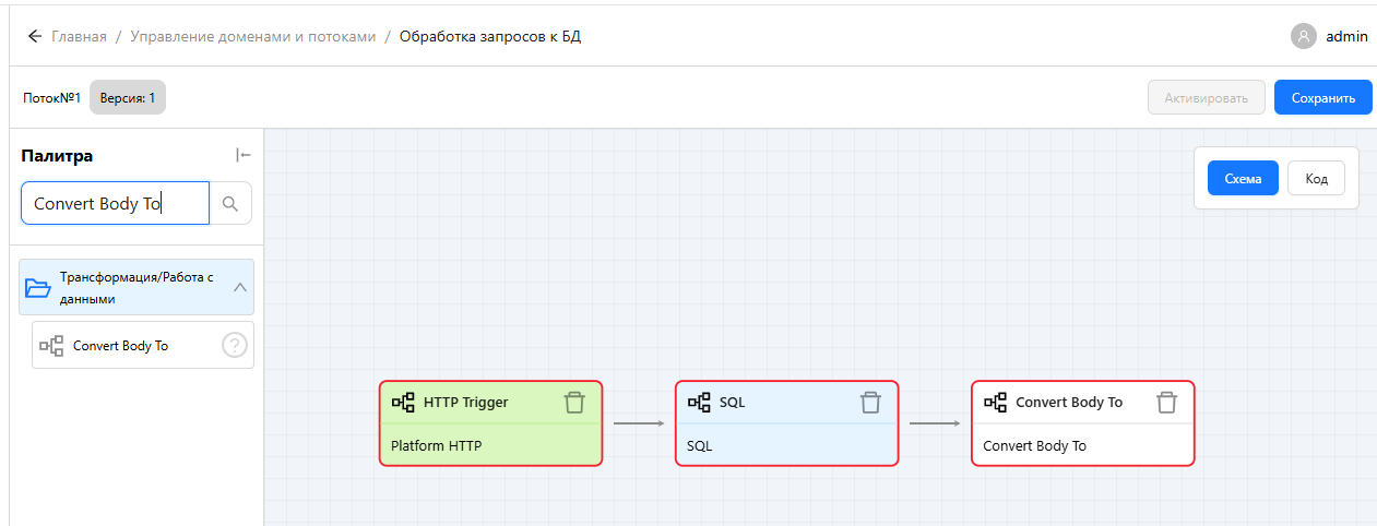 Перетащите блок Convert Body To на рабочую область после блока SQL.