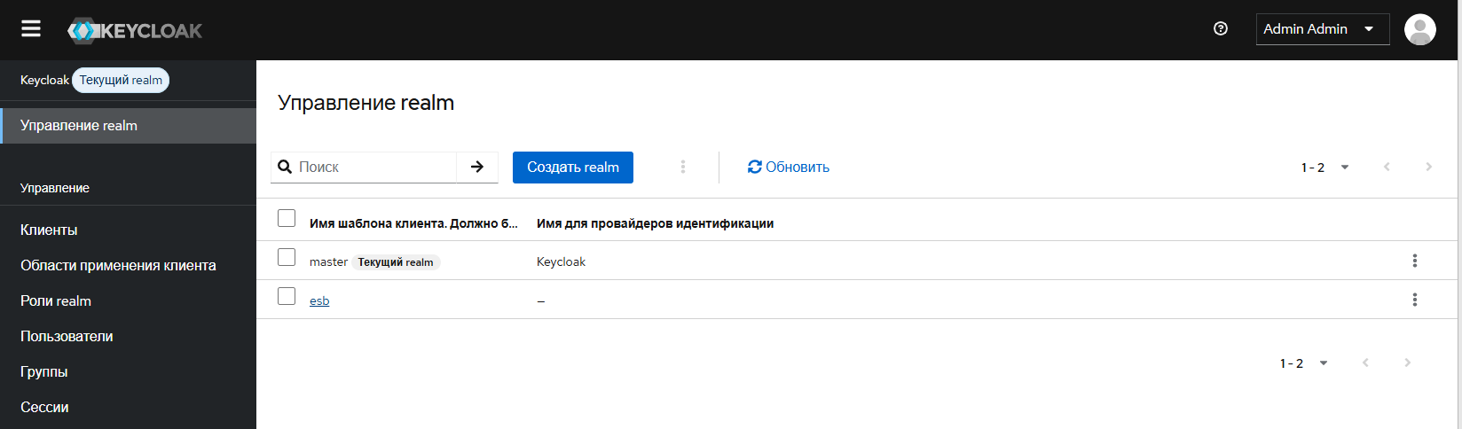 - REALM – имя пространства realm для Keycloak. Значение по умолчанию: esb.