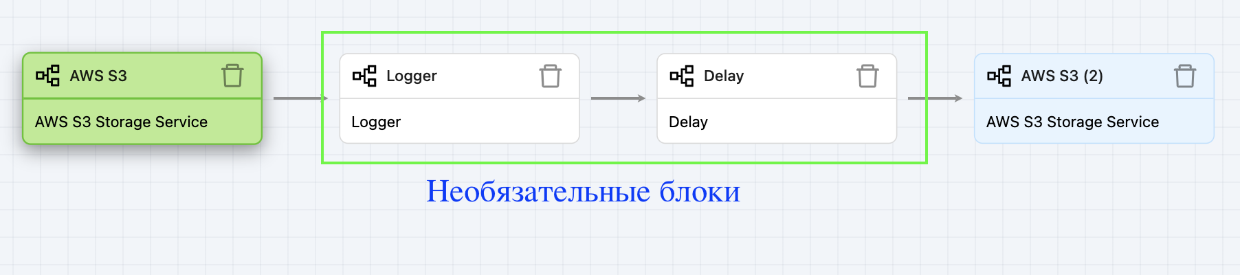 Блоки Logger и Delay являются вспомогательными для процесса и добавляются по необходимости. В приведённом ниже примере они добавлены в сценарий.