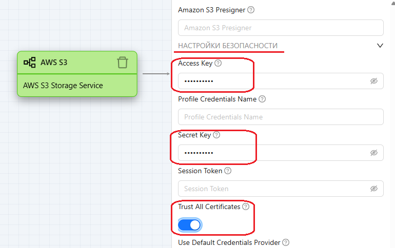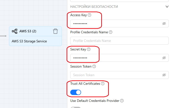 Trust All Certificates – выставляется в зависимости от настроек AWS S3