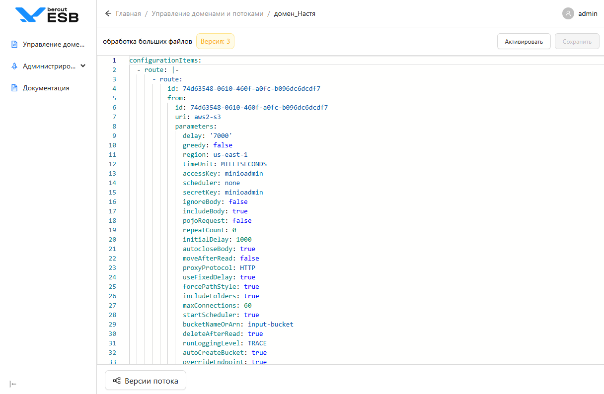 Чтобы подготовить обработку больших файлов по частям, откройте редактор потоков и настройте поток с конфигурацией, как описано ниже.