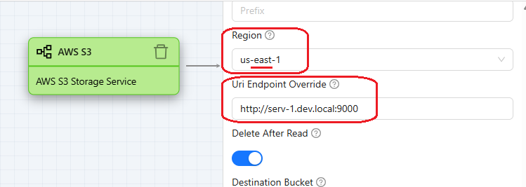 Uri Endpoint Override – такой же, как в первом блоке AWS S3