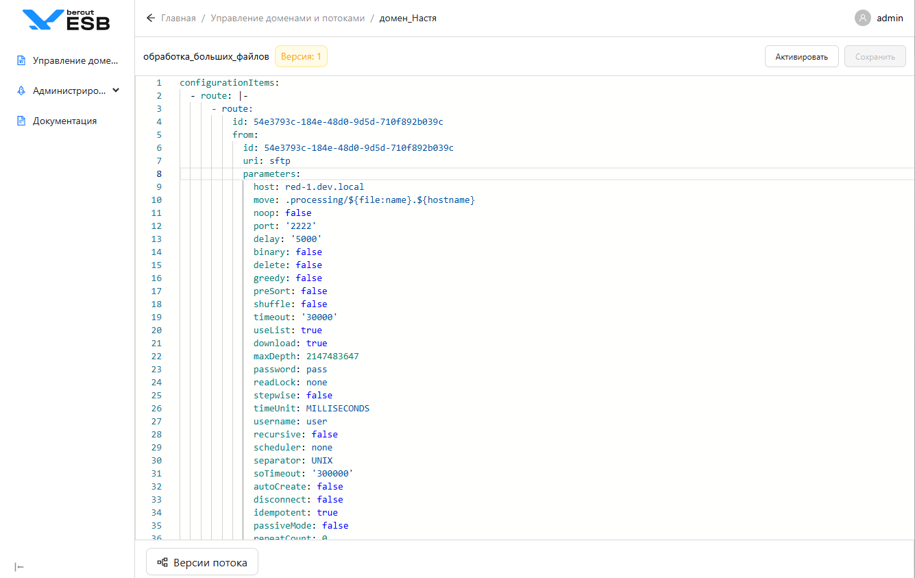 Чтобы подготовить обработку больших файлов по частям, откройте редактор потоков и настройте поток с конфигурацией, как описано ниже.