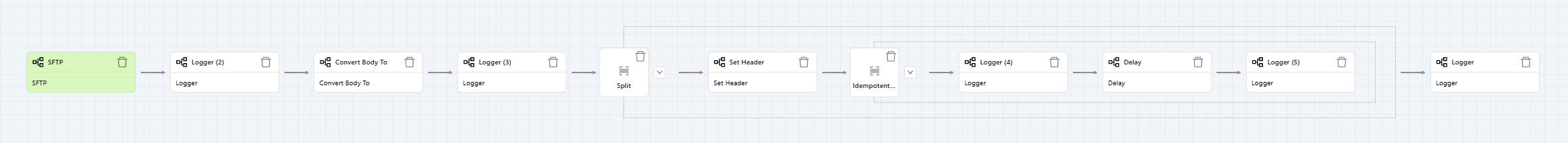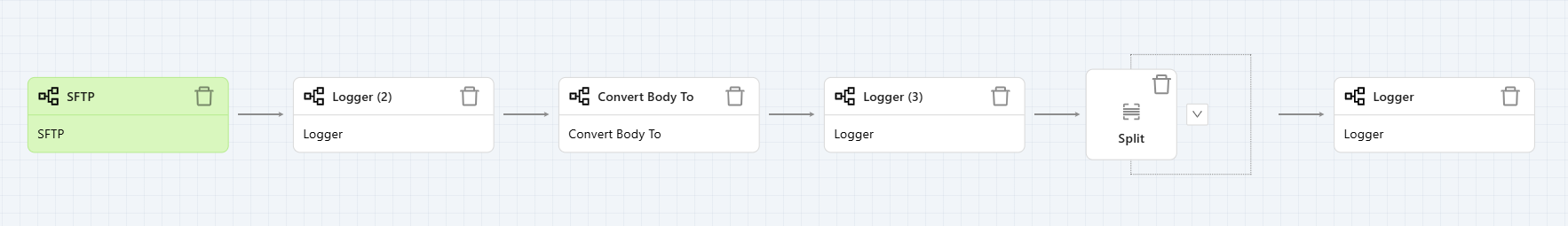 SFTP 🡪 Logger 🡪 Convert Body To 🡪 Logger 🡪 Split 🡪 Logger