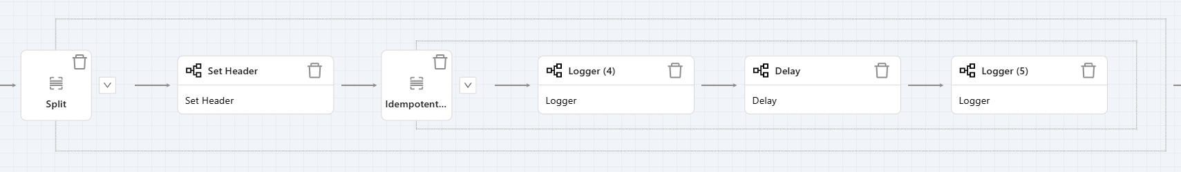 Set Header 🡪 Idempotent Consumer (Logger 🡪 Delay 🡪 Logger)