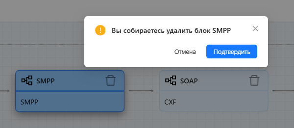 Удалить блок Кнопка доступна на интеграционном блоке | |